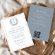 Dusty Blue Leafy Wappen Monogram Wedding QR Code Einladung
