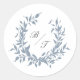 Dusty Blue Leafy Wappen Monogram Wedellogo Runder Aufkleber