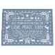 Dusty blau-weiße Liebe, Peace, Joy Papel picado Weihnachtsfeiertag geschmiedet große Geschenktasche. Es zeigt einige Weihnachtselemente wie eine minimale Krippe, Weihnachtsbäume und Hirsche, Engel und Tauben und den Text "Liebe, Frieden und Freude" "Glaube" und "Fa la la la la la la la la la la la la la la la la la" in Weiß. Es enthält auch Blume und Punkte. Diese Karte ist im mexikanischen Stil der Volkskunst.