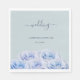 Diese wunderschöne Hochzeitsserviette besticht durch einen Blumenstrauß mit blauen Rose und elegantem Kalligraphie-Schriftart. Sie können den Header für Verlobungsfeiern, Brautpartys und Proben-Dinner personalisieren. Die Hintergrundfarbe ist Set zu Weisheit. Bitte wählen Sie eine andere Füllfarbe, um Ihr Hochzeitstil zu ergänzen.