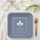 Elegante und einfache Hochzeitspapier-Teller mit einer Lilie vor einem staubblauen Hintergrund. Dieses Design ist eine einzigartige Wahl für eine moderne Hochzeit. Einfach an Ihre Hochzeitsdetails anpassen. Klicken Sie auf "Anpassen", um weitere Personalisierungsoptionen zu erhalten.