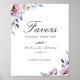 Elegante Aquarelltöne und blühendes Blattwerk in trendigen, blauen, violetten und weißen Farbtönen, personalisiertes Hochzeitsschild "Favors". Moderne Typografie-Design-Stil mischt Skripte mit fett formatierten Typen.