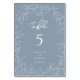 Dusty Blue Minimal Leaf Wedding Tischnummer
