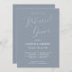 Minimal Hochzeitsdinner mit moderner Script-Schriftart auf einem staubigen blauen Hintergrund. Diese Vorlage enthält bereits Texte, die alle Informationen enthalten, die Sie für Ihr Ereignis benötigen. Texte sind online leicht anpassbar.
