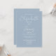Diese dustig blaue minimalistisch-elegante Skript-Hochzeitseinladung kann mit Ihren Informationen in chic Typografie personalisiert werden mit Ihren Angaben auf der Hochzeitswebsite und Ihrem QR-Code auf der Rückseite. Entwickelt von Thisisnotme©