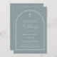 Dusty Blue Modern Arch Script Minimal Christening Einladung