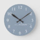 Dusty Blue Modern Script Elegante Monogram Name Runde Wanduhr