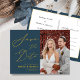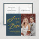 Dusty Blue Elegant Gold Script Modernes Foto Minimalistisch Wedding Save the Date Announcement Postcard. Lass Familie, Freunde und Kollegen wissen, dass Sie Set ein Datum für Ihre Hochzeitsfeier mit dieser eleganten, stilvollen und modernen Hochzeit speichern Sie das Datum Einladungskarte. Alle Texte sind so vorbereitet, dass Sie sie einfach und schnell mit Ihren eigenen Details personalisieren können.