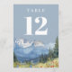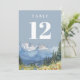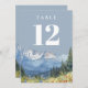 Dusty Blue Modern Watercolor Mountain Tischnummer