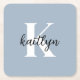 Dusty Blue Monogram Rechteckiger Pappuntersetzer
