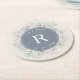 Dusty Blue Monogram Wedding Runder Pappuntersetzer