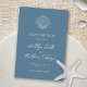Dusty Blue Modern Muschel Beach Ocean Hochzeit in Urlaubsort Save the Date Card. Feiern Sie Ihren besonderen Tag mit diesem eleganten und wunderschönen Hochzeitsdesign, um Ihren besondere Anlass zu verschönern. Alle Texte sind so vorbereitet, dass Sie sie einfach und schnell mit Ihren eigenen Details personalisieren können.