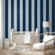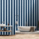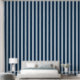Ein staubblauer und ein marineblau ultra breiter, 1,5 cm gleichmäßig gestreifter Tapete.