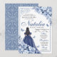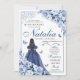 Elegant Dusty Blue & Navy Floral Quinceanera Birthday Einladung