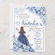 Elegant Dusty Blue & Navy Floral Quinceanera Birthday Einladung