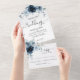 Dusty Blue Navy Floral Boho Botanical Wedding RSVP All In One Einladung