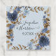 "Dusty Blue Navy Floral Fall Neutral Leaf Foliage." Tief marinierte, staubige Blau- und Brauntöne mit einem schlichten, blassblauen Hintergrund sorgen für ein stilvolles, modernes Blumendesign. Die Namen von Braut und Bräutigam und das Hochzeitstag (oder jeder Text, den Sie bevorzugen) sind mit den Vorlagenfeldern leicht zu verändern. Designed by Audrey Jeanne Roberts.