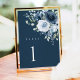 Dusty Blue Navy Floral Wedding Table Number Sign Tischnummer
