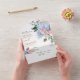 Moderne Hochzeit in einer Einladung mit hellblauen/staubblauen Hydrangeas mit pastellrosa , rot, pfirsichfarben , weißer Rose, Peonies, Salbei Eukalyptus-Blätter, Ästen und Blattwerk. Sanfte und verträumte romantische Farbtöne Frühjahr Wasserfarben Blumen Designs zu Ihrem Thema Hochzeit.