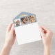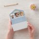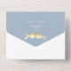 Die moderne und romantische Hochzeitseinladung in Blau mit drei Foto-Slots, ein stilvolles Imitat Gold Lovebirds Design und ein eingebauter QR-Code für den einfachen UAWG. Perfekt für Öko-bewusste Paare - kein Umschlag ist erforderlich! Das gepflegte Layout bietet Platz für Ihre Hochzeitswebseite und personalisierte Details, was es zu einer bequemen und eleganten Wahl für Ihre Feier macht.