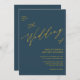 Dusty Blue QR Code in einem Gold Script Hochzeit Einladung