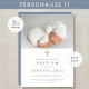 Personalisierte Dusty Blue Religious Cross Boy Foto Taufe Einladung.