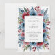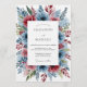 A rich tapestry of deep crimson and soft dusty blue blossoms encircles this design. Lush greenery complements the bold floral elements, creating an atmosphere of romantic elegance. This evocative palette suggests a sophisticated and timeless event.