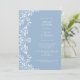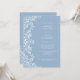 Set Sie die Bühne für einen Hochzeitsabend in der Probe mit dieser eleganten, staubblauen Probe-Dinner-Einladung. Die Blau- und Weißtöne eignen sich perfekt für eine romantische Hochzeit im alten Geldalter oder für eine Hochzeit im Blumengarten. Personalisieren Sie die Details und fügen Sie die Braut und Bräutigam Monogramm auf der Rückseite. Entworfen von Simple Desert Designs Studio. Melden Sie uns für eine individuelle Farbe, die zu Ihrem Hochzeitstil passt.