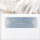 Elegantes Vintages verziertes Design in Creme auf sanft staubblauem Hintergrund, romantische und raffinierte, großartige Rücksendeadressen-Aufkleber für die Hochzeit von Jahrgängen, romantische Hochzeiten und Winterhochzeiten.