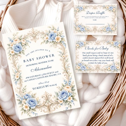 Dusty Blue Rose Baroque Baby ShowerDesignt von Andreea Eremia