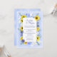 Diese staubblaue Einladung mit blühenden Sonnenblumen und Rose ist perfekt für ein Hochzeitsthema im Garten. Farben sind vielseitig für hellblaue, goldene und gelbe Hochzeitsfarben. Weiße Wildblumen sind eine schöne Ergänzung zu Sonnenblumen und Rose.