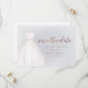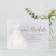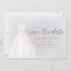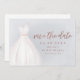 Elegantes Brautparty speichern Sie die Dattelkarten mit Aquarellfarben weiße Hochzeitskleid mit funkelnden Imitaten Rose Gold Glitzer Save the Date Skript auf staubigen blauen Hintergrund.
