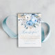 Feiern Sie die bevorstehende Ankunft mit unserem Baby in Bloom Dusty Blue Rose Elegant Baby Shower Dankeschön Karte mit delikaten Aquarellfarben-Rose in weichen staubblauen Farbtönen für ein zeitloses, raffiniertes Aussehen. Diese elegante Einladung eignet sich perfekt für eine Blumendusche und zeigt aufwändige botanische Details, eine anmutige Schriftzeichen-Typografie und ein charmantes, im Garten inspiriert Thema. Diese Babydusche wurde für moderne Eltern konzipiert, die die klassische Schönheit Liebe haben. Sie lädt zum Set eines stilvollen und unvergesslichen Festes ein. Ob im Frühjahr, Sommer oder Winter, das dustige blaue Blumendesign sorgt für eine Touch von Romantik und Charme.