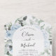 Dusty Blue - Sage Green Floral Wedding RSVP All In One Einladung