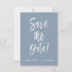 Dusty Blue Hand Lettered Script Save the Date Card. Der Text dieses handgeschriebenen Pinselskripts kann mit Namen und Datum aktualisiert und angepasst werden.