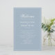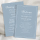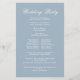 Erschaffen Sie einen zeitlosen Sake mit diesen eleganten Hochzeitsfeiern mit einem staubigen blauen Thema und klassischen Kalligrafien-Skripten. Dieses zweiseitige Single-Layout wurde mit einem vereinfachenden, raffinierten Stil gestaltet und präsentiert Ihnen Ihre Service- und Brautparty-Liste. Die stilvolle, trendige Typografie verleiht dem Hotel seinen formellen, traditionellen Charme, während das elegante Design Ihren Tag mit einer raffinierten Touch bereichert. Perfekt für eine glänzende und anmutige Hochzeit