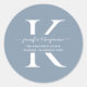 Dusty Blue Script Monogram Rücksendeadresse Runder Aufkleber