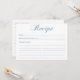Diese dustig blaue, elegante Script-Brautparty-Rezeptkarte ist perfekt für jede Dusche. Es hat viele Linien für die Zutaten und der gesamte Rücken ist Linien für die Richtung. Bringen Sie eine oder zwei Rezeptionskarten mit jeder Duscheinladung ein, die die Gäste frage, ihr Lieblingsrezept(e) mit der Braut zu teilen. Sie werden überrascht sein, wie abwechslungsreich die Rezepte sein werden und wie dankbar die Braut sein wird, ein Set bewährter Rezepte für ihren geliebten Bräutigam zu haben.