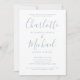 Diese elegante, moderne und einfache Einladung zu einer Begegnungsfeier mit ihren charakteristischen Stilnamen kann in staubblauen Schriften mit Ihren Informationen personalisiert werden. Entwickelt von Thisisnotme©