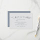 Vervollständigen Sie Ihre elegante Hochzeitssuite mit dieser staubblauen und silbernen RSVP-Karte. Feine Aquarellfloralen und edle Typografie schaffen eine saubere, raffinierte Struktur, die sich ideal für moderne Hochzeiten im Boho oder im Winter eignet. Enthält die Optionen für das Essen Präferenzen, sodass es stilvoll und praktisch für Ihre Gäste.