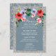 Dusty Blue Silver Glitzer Aquarell Blumenstrauch Menükarte