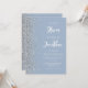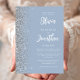 Die links Kulisse dieser eleganten, modernen Hochzeitseinladung besticht durch eine silberne Imitat-Glitzer-Grenze. Der anpassbare Text kombiniert weiße Skripte und serifenlose Schriftart auf einem staubblauen Hintergrund. Die Rückseite ist mit einem passenden dustigen Blau- und Silberdesign versehen.