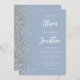 Dusty Blue Silver Glitzer Calligraphy Wedding Einladung