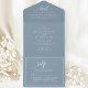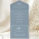 Diese Einladung besticht durch eine staubblaue Kulisse und einen modernen Script-Schriftart, der minimalistische Eleganz ausstrahlt. Das klare und leicht lesbare Design sorgt dafür, dass Ihre Gäste alle notwendigen Informationen für Ihre Hochzeitsfeier erhalten. Mehr als nur eine Einladung, dieses vielseitige Design ermöglicht es Ihnen, die Details für Ihre Zeremonie, Ihren Empfang, Ihre UAWG und alle weiteren Informationen, die Sie teilen möchten, zu personalisieren. Mit seinem zeitlosen Stil und seiner weichen Farbe ergänzt diese Einladung perfekt eine Vielzahl von Hochzeitsthemen, von romantisch und elegant bis modern und raffiniert.