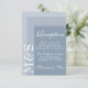 Einfache, moderne und schicke Hochzeitszitkarte für Brautpaare, die ihre Zeremonien in modernem Stil und staubblauer Farbe bewundern. Die schicke Hochzeitssuite verfügt über einen modernen, weißen Schriftart mit Monogramm-Initialen.