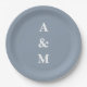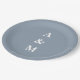 Dusty Blue Simple Monogram Initial Elegante Hochze Pappteller