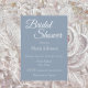 Einfache Stil, Brautduscheinladung mit einem trendigen, staubblauen Hintergrund, dem Namen und der Veranstaltungszeit der zukünftigen Braut, dem Ort, dem Kontakt usw., in weißer, stilisierter Schrift gedruckt. Personalisieren Sie Ihre Einladung, indem Sie Text durch eigene Brautparty-Informationen ersetzen. Wählen Sie Ihre Einladung Papier Stil und Quantität.