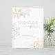 Dress up your winter baby Dusche Getränkestation mit diesem eleganten staubigen blauen Mimosa-Bar. Mit goldenem Glitzer-Look-Skript und frostigen Schneeflocken ist es der perfekte Akzent für Ihre kleine Schneeflocke. Ein stilvoller Weg, um die Gäste durch Ihr Bubbly-Setup mit saisonalem Charme zu führen.