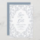 Dies ist eine perfekte Hochzeit speichern Sie die Dattelkarte, die sich königlich, romantisch und elegant fühlt mit einem Pop von weichen hübschen staubblauen Glitzer, Blumenrahmen Design mit Blätter. Ideal für die Wintersaison, aber auch das ganze Jahr über.