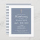 Feiern Sie mit unserer schönen, blauen Taufeinladung die Taufe oder Taufe Ihres Kindes! Diese Einladungen sind mit einem klaren weißen Rahmen und einem staubblauen Hintergrund versehen, mit einem atemberaubenden Goldeffekt-Kreuz, der Ihrem besondere Anlass eine Touch Eleganz verleiht. Die Rückseite der Einladung zeichnet sich durch ein gestreiftes, staubiges Blau und Weiß-Design aus und verleiht ihr einen charmanten und polierten Look. Unsere Einladungen werden auf erschwinglichem Papier gedruckt, was sie zu einer hervorragenden Wahl für diejenigen macht, die woll haben, die Taufe ihres Kindes zu feiern, ohne die Bank zu brechen. Sie sind auch leicht zu personalisieren, sodass Sie Ihre eigenen Formulierungen und Details hinzufügen können, um die Einladung wirklich einzigartig zu machen. Ob Sie eine kleine Ansammlung oder eine große Feier veranstalten, unsere dustigen blauen Taufeinladungen sind ideal, um Ihre Freunde und Familie zu einem besonderen Erlebnis zu einladen.